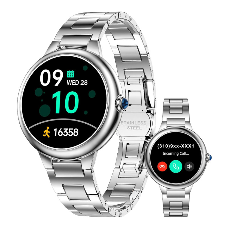 - It has a stylish design with metal links that resemble a fashion watch, but it includes smart features.