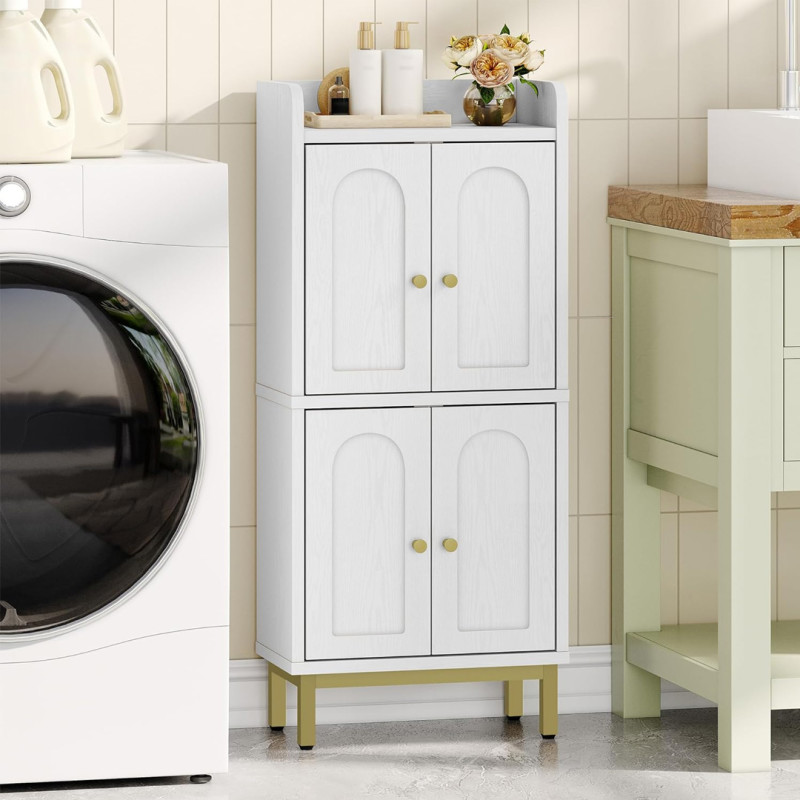 The details that make this cabinet shine start with the doors. Each features an Art Deco-inspired arched cutout, further enhanced by the gold handles and feet. It features adjustable knobs on the feet, so they can be customized in case your floor isn’t perfectly even. The unit comes with an anti-tipping device for extra security, too, so you won’t have to worry about it falling and hurting someone.
