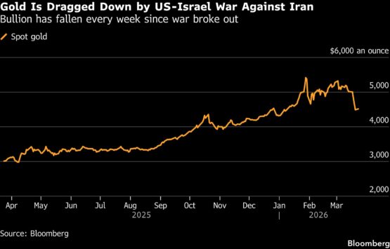 Gold’s choppy opening mirrored the broader market, with crude fluctuating near the highest close since mid-2022 and equity markets also volatile. In the three weeks since the war began on February 28, bullion’s decline has been driven partly by forced selling as investors seek to cover losses elsewhere in their portfolios. The metal ended last year at $4 319.37 an ounce.