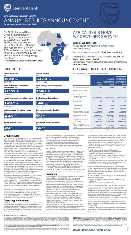 “That combination could affect credit demand, deal activity and overall economic momentum across Standard Bank’s footprint.”