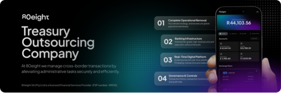 80eight operates as a licensed Treasury Outsourced Company (TOC) and an authorised financial services provider (FSP 49010) in South Africa. This ensures compliance and transparency for all clients. Beyond payments, 80eight’s ecosystem includes crypto trading, investment tools, wallet infrastructure, and lending for SMEs – all accessible through the 80eight app.