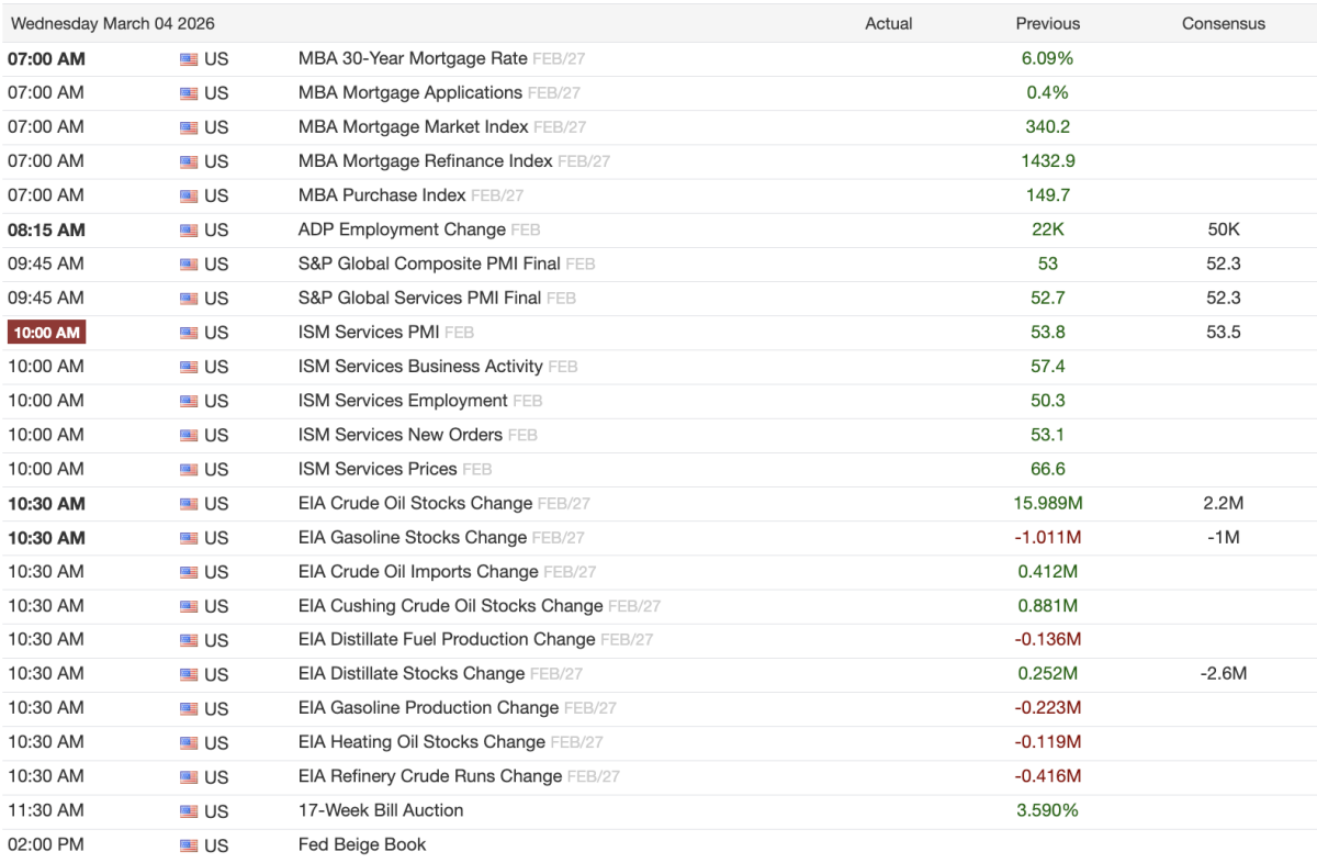 Here are today’s big economic data reports today, which will be anchored by February’s ISM Services PMI and ADP Employment Change data.