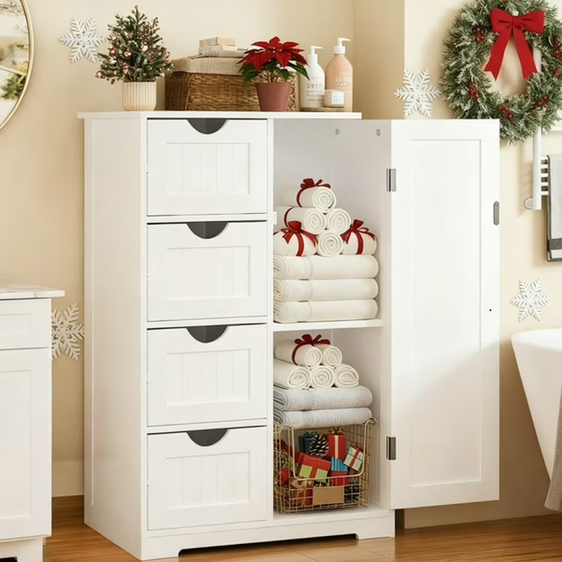 The Ktaxon Bathroom Storage Cabinet is a versatile storage option that can be used in the kitchen, bathroom, hallway, bedroom, and more. The four drawers offer storage space to keep smaller items together, while the cabinet side offers shelves for larger items, and it’s only $65 at Walmart. Shoppers can save $38 during this Flash deal.