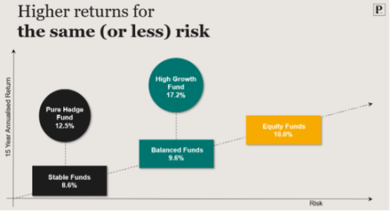 - Find better risk-adjusted returns within the same risk band: Seek out an asset manager with a stronger track record of generating excess return for the same level of risk. This allows investors to potentially improve long-term outcomes without increasing volatility, arguably the most elegant solution. The difficulty can be finding an asset manager whose investment philosophy and process is tailored to optimising absolute returns within controlled volatility targets.
