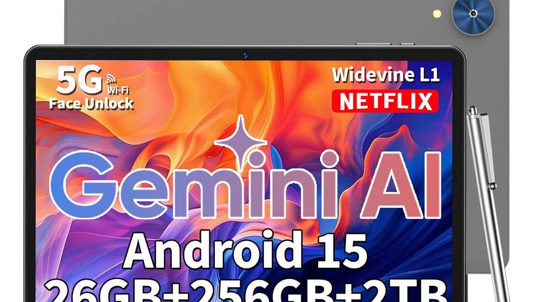 The two-in-one tablet comes with a wireless keyboard, a wireless mouse, a stylus pen, a foldable case, a screen protector, a charging adapter, and a USB-C charging cable, making it a versatile and multifunctional device. Running on the Android 15 operating system with up to 26 gigabytes (GB) of physical and virtual memory, this 10.1-inch laptop offers a smooth, light computing experience on the go. It’s perfect for browsing the internet, streaming shows, and doing some work, whether it’s writing up a document or going through your inbox.