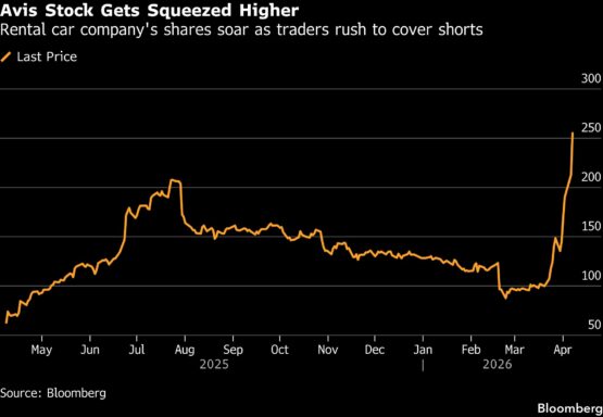 Avis is one of the world’s biggest rental-car firms, operating more than 10,000 locations in about 180 countries. The sector got a boost in recent weeks as chaos at airports across the US prompted travelers to ditch flights and opt for long drives. Hertz Global Holdings Inc. shares have surged some 37% since the start of March, but Avis more than doubled in the same period.
