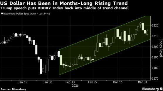 A return to 1,222 on the Bloomberg Dollar gauge would not surprise given that Trump offered no plan to reopen the Strait of Hormuz beyond dropping the problem on others’ doorstep and an optimistic notion that it opens “naturally”.