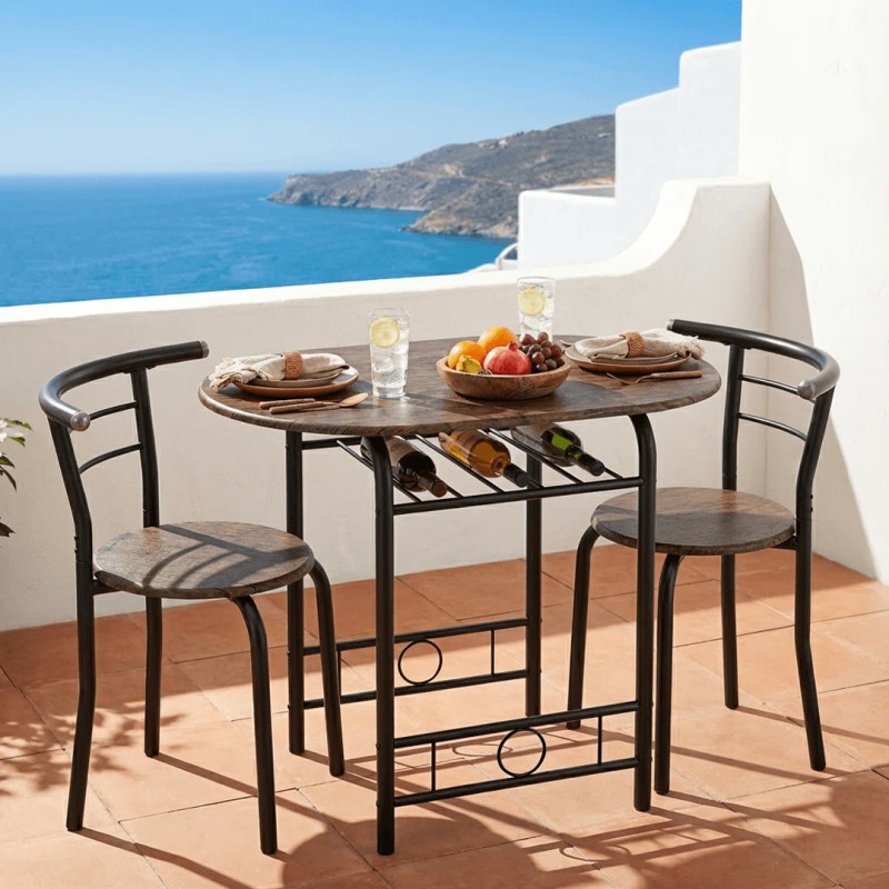 The space-saving design of this dining set is genius, with the pieces fitting perfectly together when the chairs are pushed in, making it ideal for even smaller spaces. The table, which can comfortably seat two for a meal, even has a built-in storage shelf that can also serve as a wine rack. Measuring around 32 inches long and 21 inches wide when nestled together, the dining set doesn’t take up a large footprint. One shopper raved, “Just what I needed! It is a perfect size for my balcony and looks terrific!”