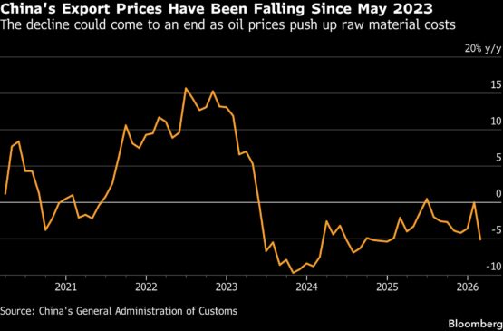 For almost three years, China’s export prices had been falling due to overcapacity and intense competition, helping to contain inflation in economies from the US to Europe. Those declines shaved an estimated 0.3%-0.5% off headline inflation in advanced economies in recent years, according to Capital Economics.