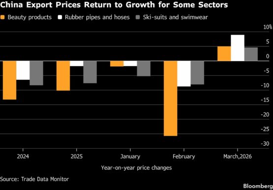 That cost pressure has already seen Chinese producer prices return to growth for the first time in more than three years and Goldman Sachs Group Inc. expects overall export prices to turn positive as soon as in March. Official data to be released around April 25 will confirm whether that’s the case.