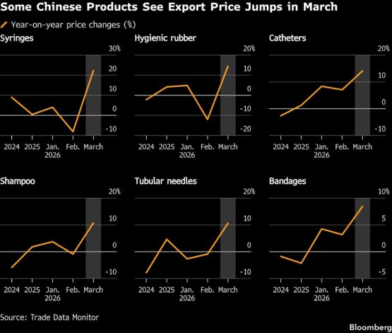 More than a dozen categories of household goods saw sharp year-on-year price increases in March, customs data compiled by Trade Data Monitor and analysed by Bloomberg showed — snapping a sustained decline over the past few years that had helped restrain global inflation.