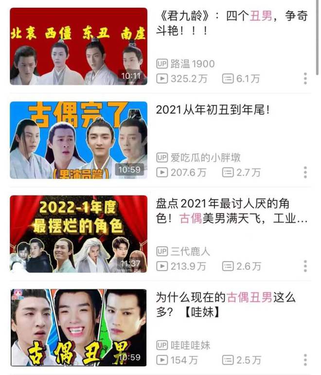 B站UP主们去年做过的古装偶像剧丑男盘点。图/B站截图